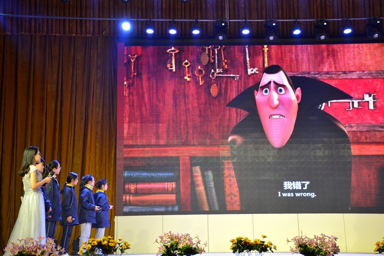 《白雪公主》中惡毒的王后,可愛天真的七個(gè)小矮人,美麗無邪的白雪公主給大家留下深刻的印象。國際部《搞笑版灰姑娘》讓大家感受到流行音樂和話劇的無縫銜接,爆笑捧腹的樂感。配音版《精靈旅社》以假亂真的配音讓人驚嘆孩子們語言功底的深厚.....