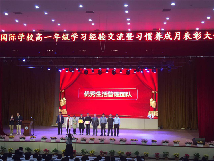 隨后,學(xué)校對(duì)在習(xí)慣養(yǎng)成月中表現(xiàn)突出的同學(xué)和團(tuán)體進(jìn)行了表彰,分別進(jìn)行了十星表彰、優(yōu)秀班集體表彰、優(yōu)秀教師團(tuán)隊(duì)表彰和優(yōu)秀宿舍管理團(tuán)隊(duì)表彰。其中獲得優(yōu)秀班集體的是:高一1班、高一2班、高一3班、高一5班、高一8班、高一9班;獲得優(yōu)秀教師團(tuán)隊(duì)的是:高一2班、高一3班、高一5班、高一8班。中學(xué)部主任郭學(xué)明和高一年級(jí)主任胡騰飛為獲獎(jiǎng)學(xué)生和團(tuán)體進(jìn)行了頒獎(jiǎng)。
