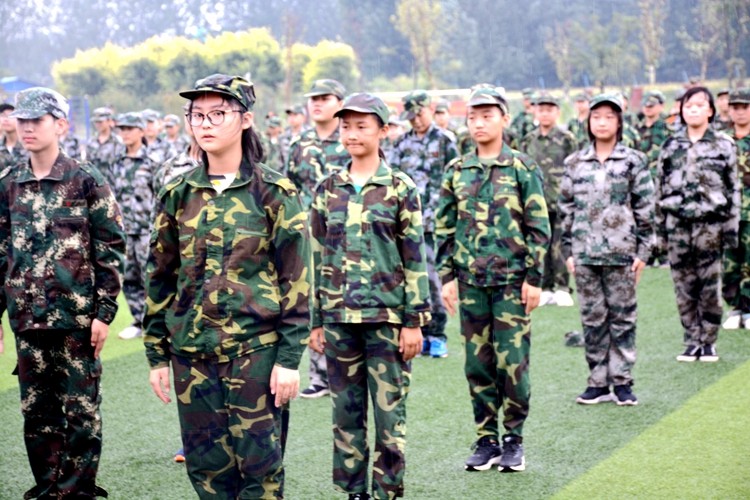雖然天公不作美,但是絲毫沒(méi)有影響到初一、高一新生們的士氣。在莊嚴(yán)肅穆的國(guó)歌聲中,匯演拉開了序幕。升旗儀式完畢之后,22個(gè)班級(jí)共同在草坪上進(jìn)行軍事演習(xí)。教官們的口令聲鏗鏘有力、此起彼伏,學(xué)生們一個(gè)個(gè)精神抖擻、斗志昂揚(yáng)。軍事演習(xí)主要包括行進(jìn)間轉(zhuǎn)法、稍息立正和跨立、蹲下起立、敬禮禮畢等6大科目。學(xué)生們努力把每一項(xiàng)都做到盡善盡美,贏得了在場(chǎng)觀眾們的一致好評(píng)。