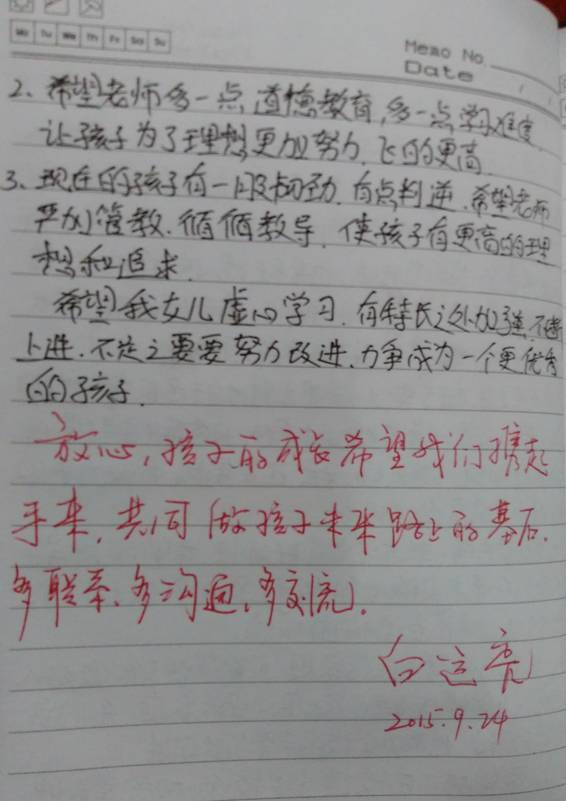 導師直接指導學生,根據(jù)不同學生的個性需求,采取個性化、親情化的教育方法。學生可以自主選擇導師,導師也可以直接選擇學生。德育導師的任務是:認真傾聽學生的心聲,承認學生的個性差異,尊重學生的身心發(fā)展特點和認知水平,及時幫助學生解決成長中遇到的困難和困惑。教育日記作為學生,老師和家長之間溝通的載體。導師是學生思想上的指引者、學習上的輔導員、生活上的指導員、心理上的疏導者。導師根據(jù)不同學生的不同需求,因材施教,強化個別化指導,以增強德育工作的針對性和實效性。對學生的選擇也有一定要求,應盡量選拔學習成績優(yōu)異的學生試行,這樣容易出效果、出成績。