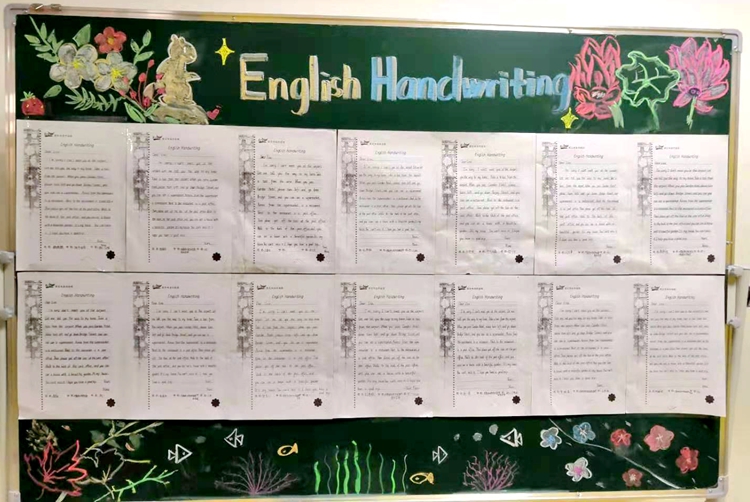 美麗的書(shū)寫(xiě)是良好學(xué)習(xí)習(xí)慣的重要一部分,良好的書(shū)寫(xiě)習(xí)慣對(duì)初一年級(jí)的學(xué)生而言尤為重要。比賽結(jié)束,各班的英語(yǔ)老師們對(duì)同學(xué)們的作品精心進(jìn)行評(píng)選篩選,把優(yōu)秀作品粘貼到比賽展示板上進(jìn)行展示。一張張作品字體工整飽滿,筆畫(huà)順序準(zhǔn)確。本次英文書(shū)寫(xiě)大賽不僅提升了學(xué)生對(duì)英語(yǔ)的學(xué)習(xí)興趣,也讓學(xué)生意思到英語(yǔ)書(shū)寫(xiě)的重要性,更激發(fā)了孩子們學(xué)習(xí)英語(yǔ)的熱情。