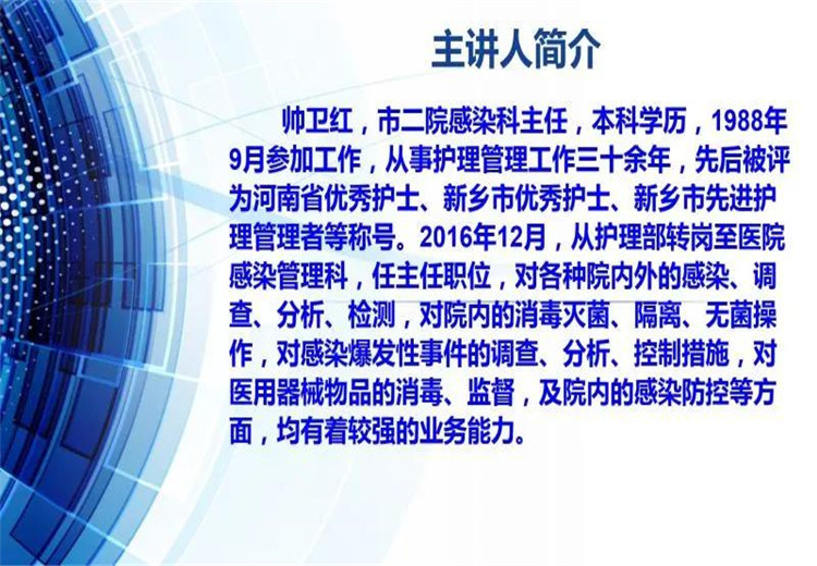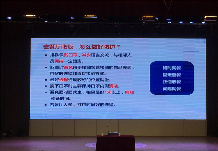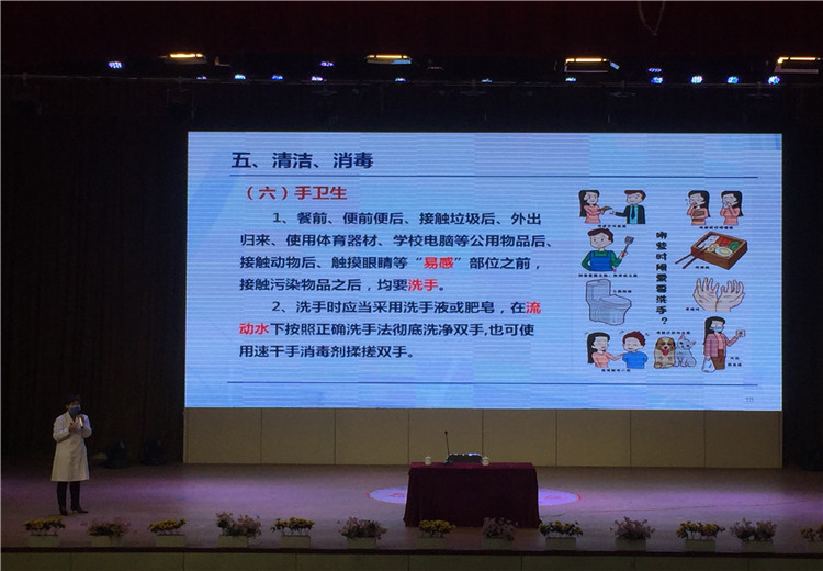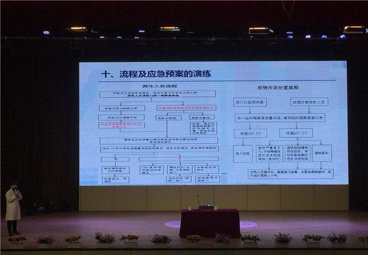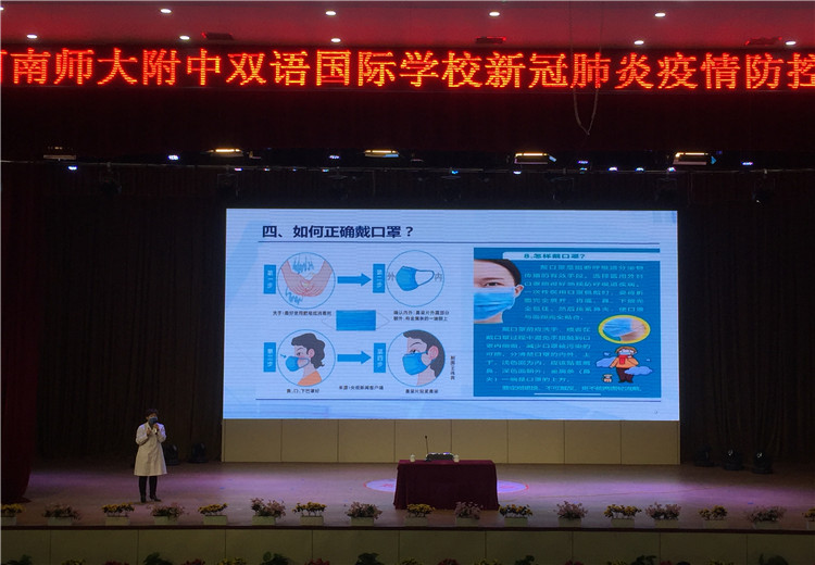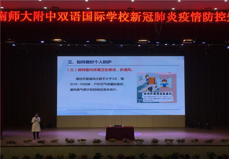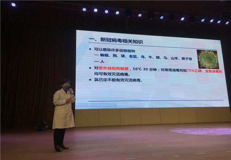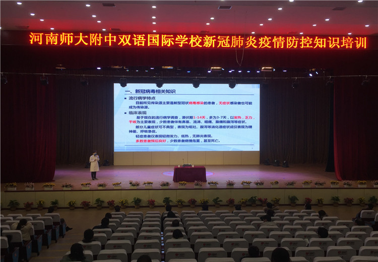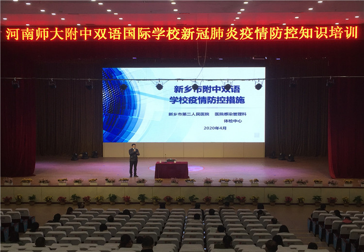 為了使全體教職工對(duì)新冠病毒有更科學(xué)的認(rèn)識(shí),也為了學(xué)校疫情防控措施的科學(xué)有效,2020年4月2日上午10點(diǎn),新鄉(xiāng)市第二人民醫(yī)院感染科帥衛(wèi)紅主任應(yīng)邀來(lái)到新鄉(xiāng)市河南師大附中雙語(yǔ)國(guó)際學(xué)校,在校劇場(chǎng)向全體行政人員、高三初三年級(jí)教師、生活老師、餐廳工作人員、物業(yè)工作人員進(jìn)行了一場(chǎng)題為《學(xué)校疫情防控措施》的知識(shí)講座。我校中層以上領(lǐng)導(dǎo)參加培訓(xùn),培訓(xùn)由羅強(qiáng)副校長(zhǎng)主持。