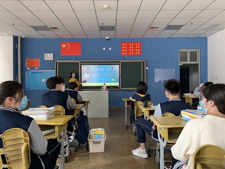 體溫檢測正常的學(xué)生進(jìn)班后,沒有久別重逢的熱情相擁、親密接觸,有的只是輕言問候、會心微笑。各班統(tǒng)一召開班會,班主任組織學(xué)生上好開學(xué)第一課,向?qū)W生們講解了學(xué)校防控要求及做好自我防護(hù)的重要性,7日上午組織學(xué)生統(tǒng)一觀看網(wǎng)絡(luò)視頻《開學(xué)第一課》。