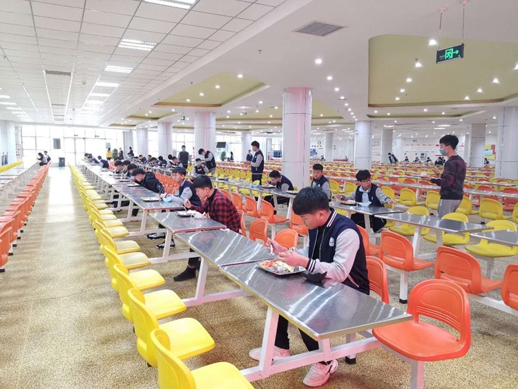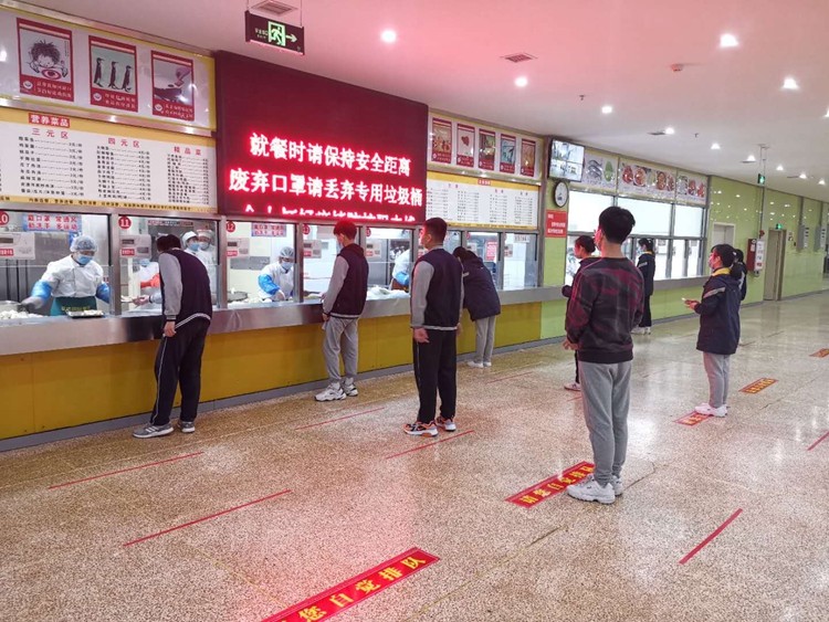 到了就餐時間,學(xué)生們開始了返校之后在學(xué)校食堂吃的第一頓飯。學(xué)生取餐排隊(duì)的時候要保持一米的間隔,取餐之后各班學(xué)生在提前劃分好的本班區(qū)域里就餐,就餐實(shí)行單人單桌,面北就餐。就餐時學(xué)生方可摘下口罩,整個就餐過程規(guī)范有序。除此之外,學(xué)校還加強(qiáng)餐前餐后管理,在洗手池等地?cái)[放洗手液等消毒物品,要求學(xué)生勤洗手、多洗手。學(xué)校通過這些具體措施最大程度的保障學(xué)生的就餐安全。