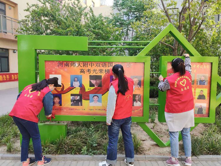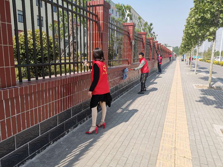 活動中,黨員志愿者們積極發(fā)揮奉獻精神,不怕臟、不怕累,有的擦拭宣傳欄,有的清除廣告,有的提桶打水,有的撿拾垃圾,熱情洋溢、干勁十足,讓校園內(nèi)外面貌煥然一新。