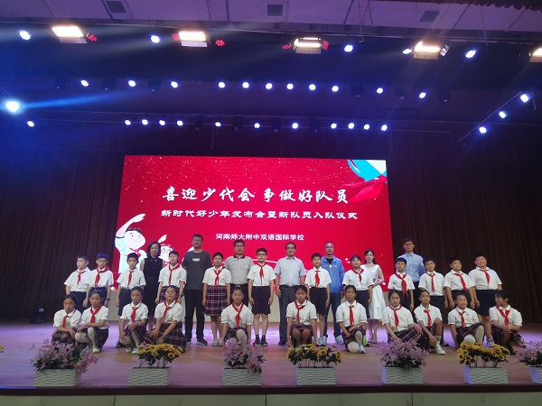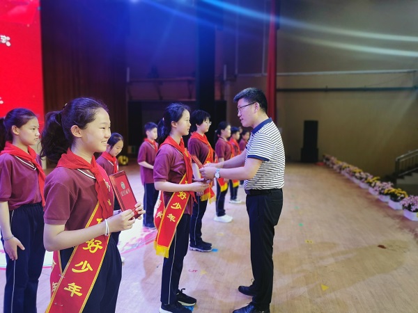 六月里花兒香,六月里好陽光。鮮花為我們翩翩起舞,紅領(lǐng)巾格外鮮紅耀眼。今天又有一批新隊員加入我們的少先隊,我們注入新鮮的血液。