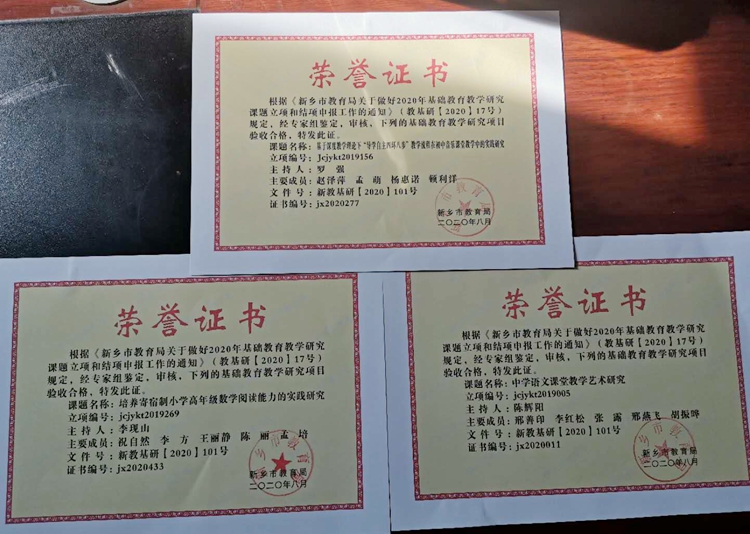 市基礎教研室按照評審標準、程序、辦法,分別對2020年申報結項和立項的課題材料進行了嚴格的評審,我校羅強副校長、李現(xiàn)山書記、陳輝陽老師主持的2019年基礎教育教學研究課題均成功結項,付彩霞、胡騰飛、張敬遠3位老師主持的2020年基礎教育教學研究課題成功立項;祝自然、李昀、吳克彥、范靈營等6位老師主持的2019年教育科學規(guī)劃課題順利結項,通過率達100%,趙延勛、張曉崢、李晶晶、王彥崴4位老師主持的2020年教育科學規(guī)劃課題成功立項,大家積極開展課題研究,努力探索教學改革新路,教研能力和水平有了大幅提升,望今后大家再接再厲,深入推進教育教學課題研究。