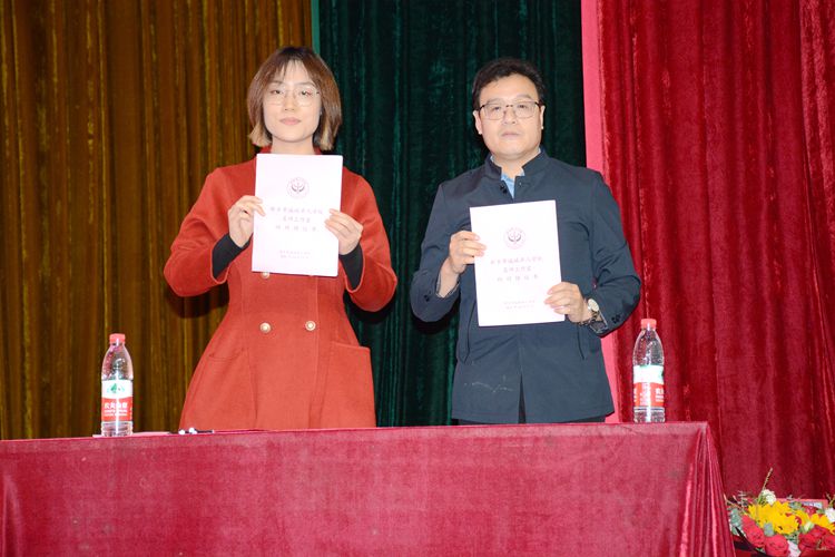 隨后是莊重的拜師儀式。學(xué)員們一起上臺向?qū)熅瞎荻Y并獻(xiàn)上鮮花。隨后導(dǎo)師和學(xué)員鄭重地簽訂了師徒結(jié)對協(xié)議。