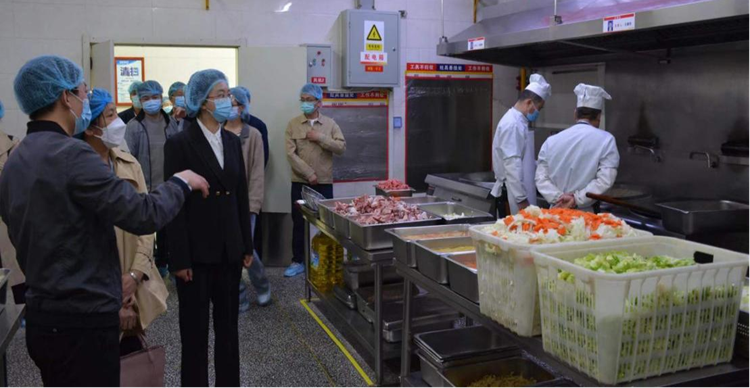 專家組一行首先來到學校餐廳,實地查看了切配間、操作間、消毒間等區(qū)域的安全衛(wèi)生情況,并現(xiàn)場查看了食品儲存、食物留樣及原材料質量,后勤保障部主任李衛(wèi)忠和食品安全專管員路國偉向專家組進行了詳細匯報和介紹,專家組對我校餐廳6S精細化管理等給予了高度評價。