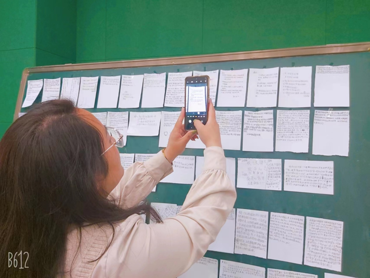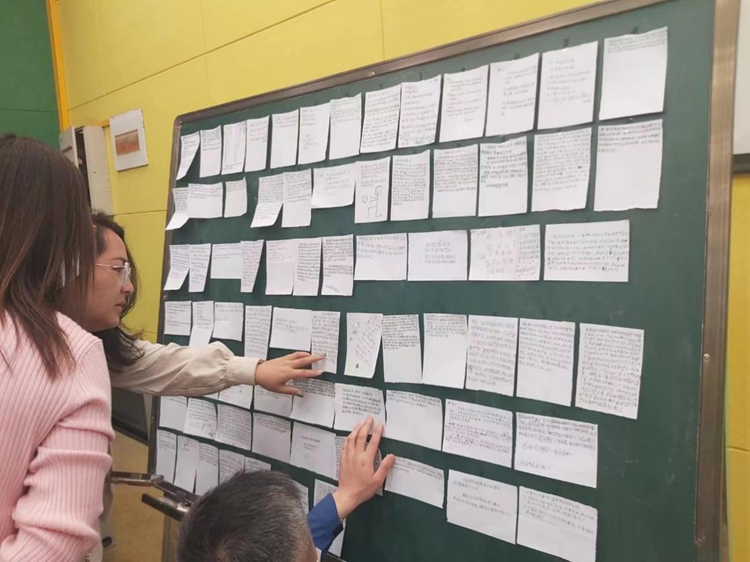 講座進(jìn)行之前,主持人宋云云老師與家長將學(xué)生匿名寫的《給家長的建議》粘貼在黑板上供家長觀看了解,便于父母們更好的了解孩子的真實(shí)感受。