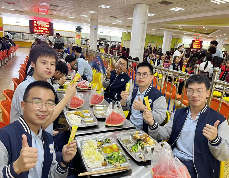 愛心護(hù)航,學(xué)校后勤在行動(dòng)。餐廳電子屏滾動(dòng)播放的勵(lì)志標(biāo)語(yǔ)、餐廳門口的條條加油橫幅、一道道精心準(zhǔn)備的美味菜肴,一塊塊清涼可口的西瓜、一張張祝福賀卡,無(wú)不體現(xiàn)我校后勤愛護(hù)學(xué)子、助力高考的一片真情。6月5日,意氣風(fēng)發(fā)的高三學(xué)子在全體師生的歡呼聲中,接過祝福賀卡,在各位校領(lǐng)導(dǎo)和全體高三教師的祝福鼓勵(lì)下,自信滿滿邁向新的征程!