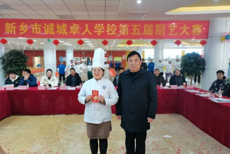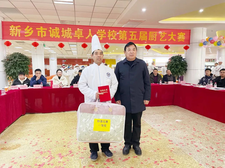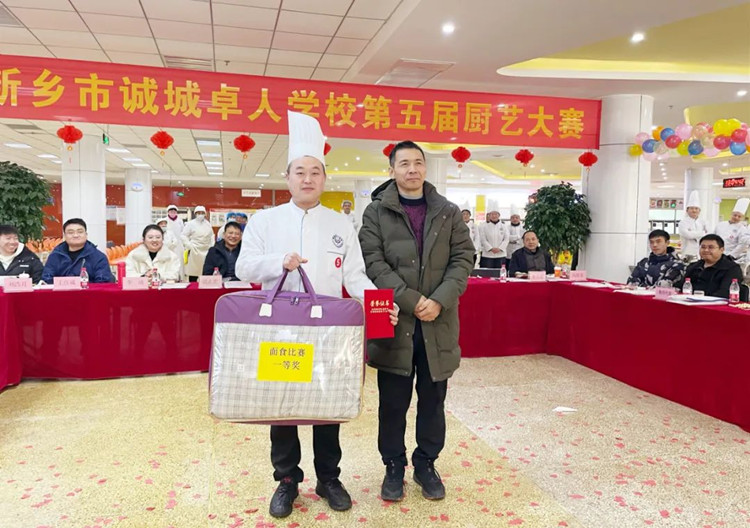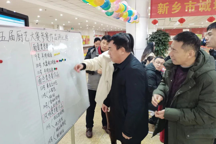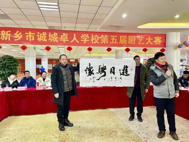 學校校長滑秀林、誠城集團教育總監(jiān)兼執(zhí)行校長楊修家、副校長溫志忠、校工會主席兼后勤保障部主任李衛(wèi)忠等領(lǐng)導、家長、學生代表70余人出席本次廚藝大賽,國家一級書法家、河南省太行書畫研究院院長曹揚憲和紅旗區(qū)市場監(jiān)管所張延國科長親臨現(xiàn)場。大賽分兩個環(huán)節(jié),一是現(xiàn)場廚師的才藝展示,二是對學生開展廚藝比拼(短視頻形式)進行總結(jié)表彰,學校食品安全專管員路國偉負責主持。