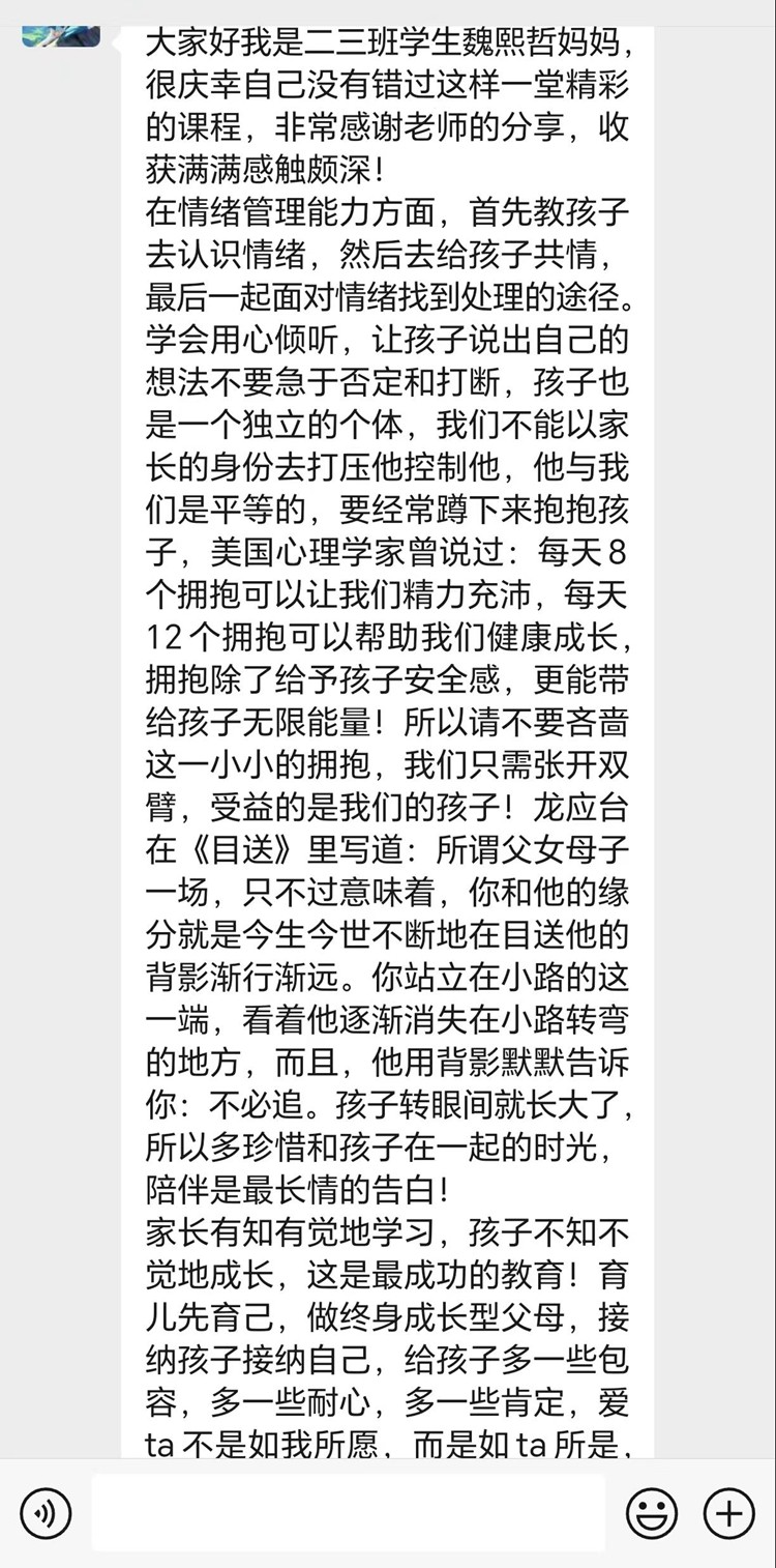 教育,是父母的修行,也是家校溝通、理念共建的過程。今后,學(xué)校將繼續(xù)開展家長學(xué)校等活動,使其成為指導(dǎo)家庭教育的紐帶。愛之以心,育之以策,讓我們一路同行,帶領(lǐng)孩子們走好成長路上的每一步,共筑孩子美好的未來!