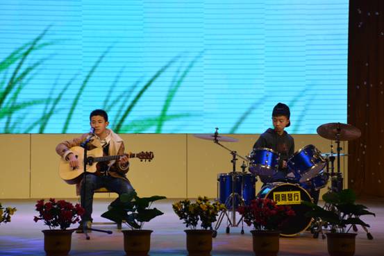 之后,各種節(jié)目輪番登場,異彩紛呈。由崔小哲、尚伊健同學(xué)帶來的薩克斯演奏《茉莉花》、《hey jude》,一下子就把現(xiàn)場熱情帶動起來。而由戲劇特長班帶來的小品《小保姆和錢包》更是讓同學(xué)們情緒跌宕起伏,時(shí)而氣憤不已,時(shí)而潸然淚下,無不感染在場的所有觀眾,牽動著每一顆觀眾的心。由喻福哲、劉育恒帶來的拉丁舞蹈《恰恰恰》又一次吸引了在場觀眾的眼球;楊天聞同學(xué)帶來的鋼琴演奏《夢中的婚禮》再次將全場氣氛帶動起來,劉念同學(xué)給我們帶來的古箏獨(dú)奏《雪山春曉》,舞蹈班的同學(xué)們?yōu)槲覀儙砭实慕治琛?/span>Breaking》、舞蹈《串燒鞋尖上的舞步》和舞蹈《我們的時(shí)代》等節(jié)目精彩表演都成為匯演的亮點(diǎn)之處。最后在,徐澤鵬、劉澤楷同學(xué)為我們帶來吉他、架子鼓表演《像風(fēng)一樣自由》又一次將匯演推上了高潮,隨后在合唱班同學(xué)們?yōu)槲覀儙淼暮铣陡街须p語的日子》中圓滿落下帷幕。