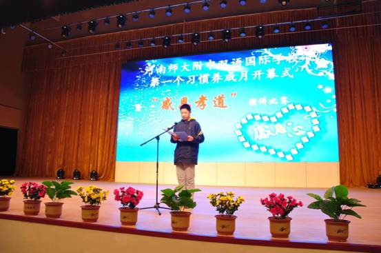 為培養(yǎng)學生良好的生活習慣、學習習慣、文明行為習慣和節(jié)儉習慣,以我校“精致育人”的教學理念和“關(guān)注每一個學生,成就每一個學生”的育人理念為指導,學校于3月7日下午在河南師大附中雙語國際學校劇場舉辦“河南師大附中雙語國際學校第一個‘習慣養(yǎng)成月’開幕式暨‘感恩孝道’演講比賽”活動,學校校長滑秀林等校領(lǐng)導及全校師生觀看了此次比賽。