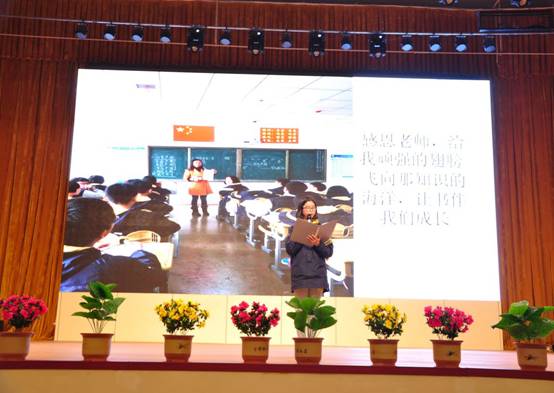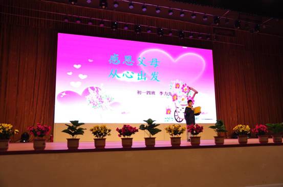 鄭好同學講到:“父母是我們?nèi)松匿伮肥?,我們每走一步,都有他們細心的叮囑,無盡的關(guān)懷和殷切的牽掛。成功了,他們不圖什么回報,只有發(fā)自內(nèi)心的欣慰和自豪;失敗了,他們沒有報怨,只有默默的支持和悉心的寬慰”。使同學們聽得熱淚盈眶,報以熱烈的掌聲。