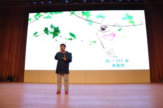 然后,選手們在PPT背景、現(xiàn)場氣氛的烘托下,聲情并茂,激情四射,平時藏于心底的感恩話語,不便表達的人生志向,頃刻噴涌而出。他們通過列舉真實事例,演說著生活中的“孝”,煽動了一波又一波情感的激流,在場的師生有的眼角濕潤,有的低頭沉思,有的熱淚盈眶。經(jīng)過激烈緊張的角逐,初二(3)班鄭好同學榮獲特等獎,高一(4)班楊柯同學、高一(3)班張鎧雋同學 、初二(2)班王先豪同學、高一(1)班楊勤煜同學榮獲一等獎,初一(3)班張嘉慶同學、初一(4)班李力先、初一(1)班楊卓妍、初一(2)班劉鑫源、初二(1)班崔小哲、初二(4)班閆佳欣、 高一(2)班武樂天等7位同學榮獲二等獎。