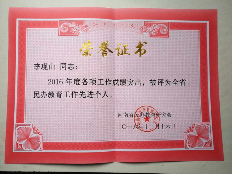 12月17日,滑秀林校長(zhǎng)和李現(xiàn)山主任到鄭州參加了河南省民辦教育研究會(huì)。在此次會(huì)議上,我校被接納為河南省民辦教育研究會(huì)常務(wù)理事單位,并被評(píng)為河南省民辦教育行業(yè)“知名品牌”,李現(xiàn)山主任被評(píng)為全省民辦教育工作先進(jìn)個(gè)人。