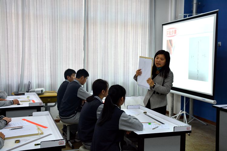 4月13日,直淑靜老師在C314物理實(shí)驗(yàn)室為高二2班學(xué)生講解《探究力的平行四邊形定則》課題。