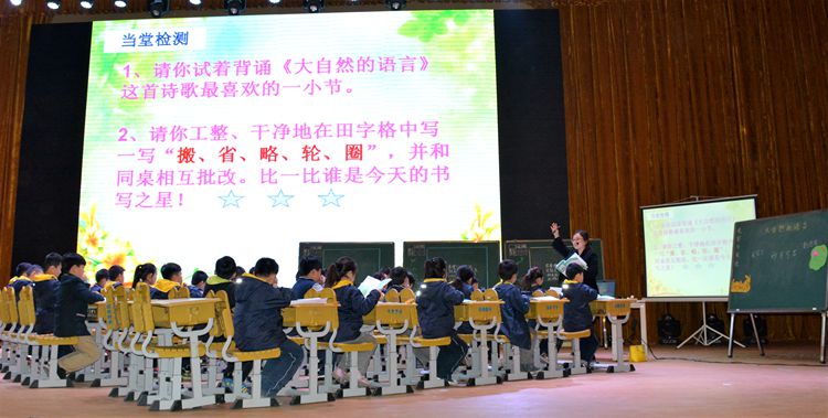 3月17日,小學(xué)部平靜老師在民辦學(xué)?,F(xiàn)場會上為參會人員展示我校創(chuàng)行的“自主導(dǎo)學(xué)、四環(huán)八步”新型課堂。