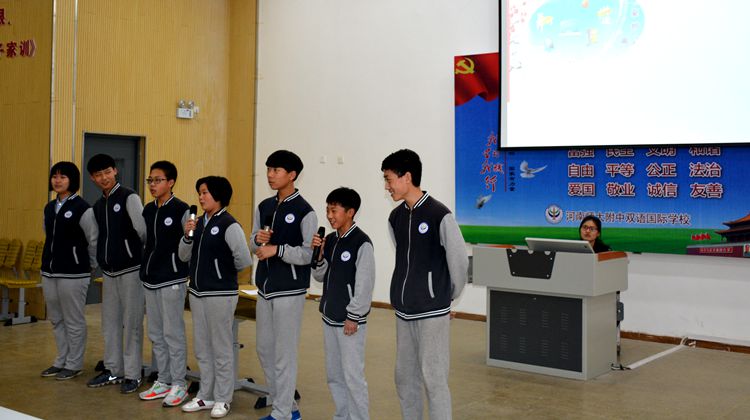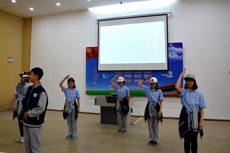 “說踐行”環(huán)節(jié),全體師生集思廣益,精心編排了歌伴舞“誠信小蘋果”,讓雙語的校園充滿誠信之聲;協(xié)力表演了誠信小故事串講,讓深厚的歷史散發(fā)誠信之光;用心編制誠信話劇“巡校偶遇”,讓歡聲笑語的校園生活匯聚誠信之力。