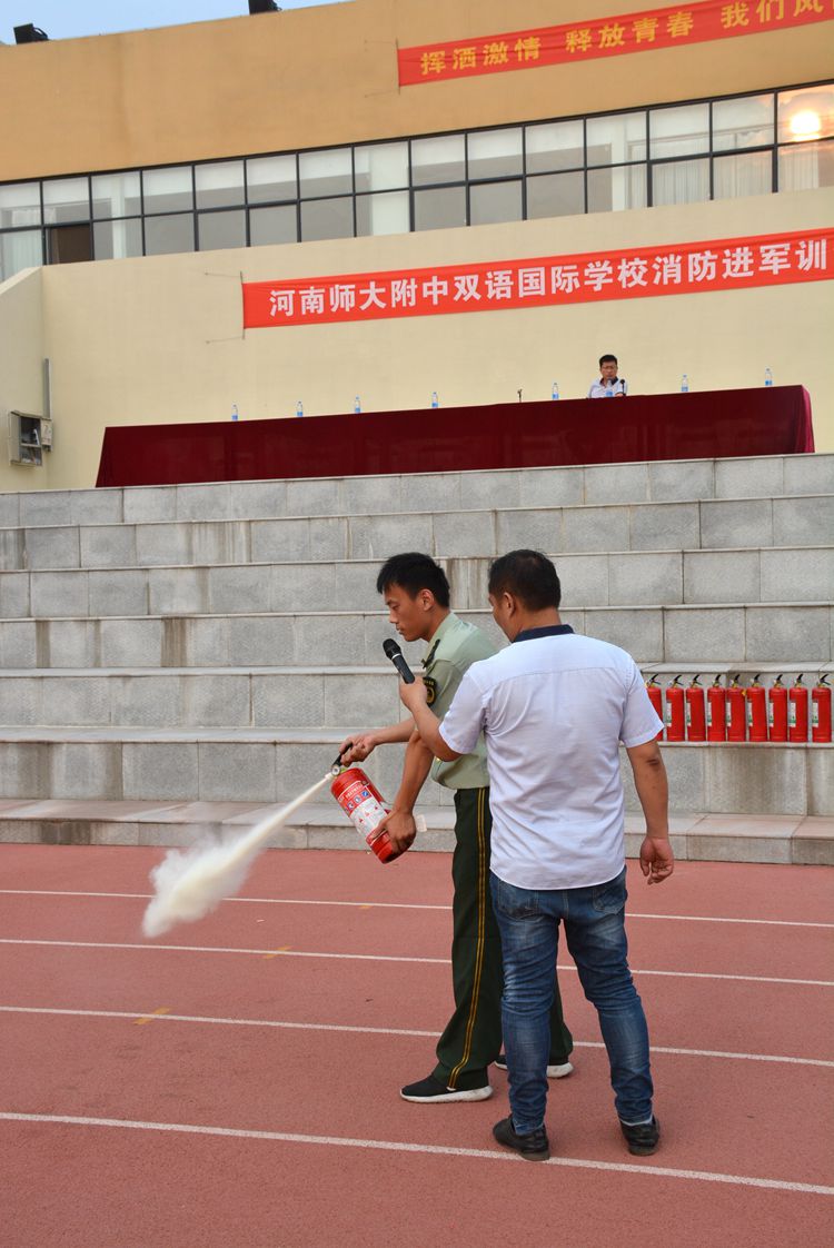 為深入貫徹落實(shí)夏季消防安全大培訓(xùn)活動及消防進(jìn)軍訓(xùn)工作方案,8月17日下午,附中雙語國際學(xué)校消防演練“進(jìn)軍訓(xùn)”活動在我校操場舉行。