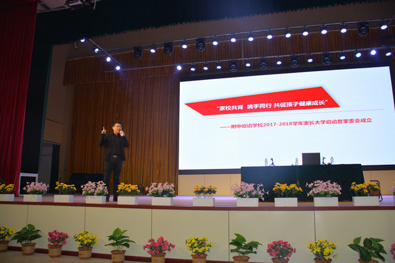 為加強(qiáng)家校交流與溝通,深入推進(jìn)合力育人,共促孩子健康成長(zhǎng),10月14日,河南師大附中雙語(yǔ)國(guó)際學(xué)校舉行2017——2018年家長(zhǎng)大學(xué)暨家長(zhǎng)委員會(huì)成立大會(huì)。會(huì)議由校團(tuán)委書記兼學(xué)部副主任郭學(xué)明主持。