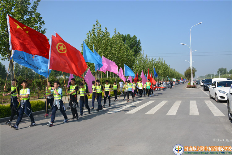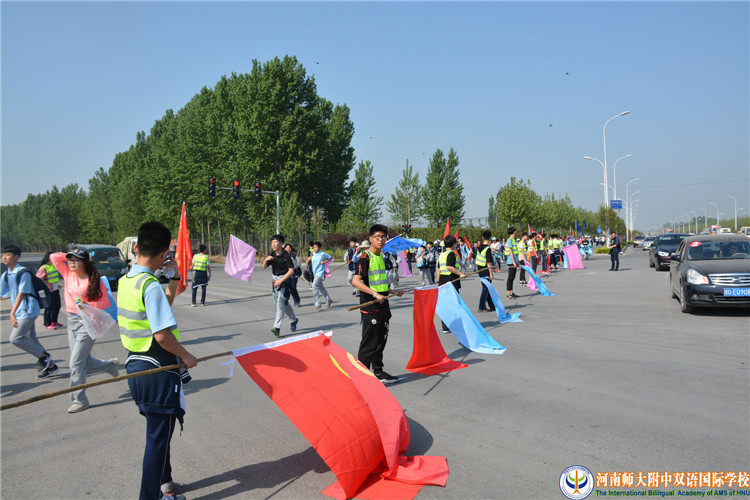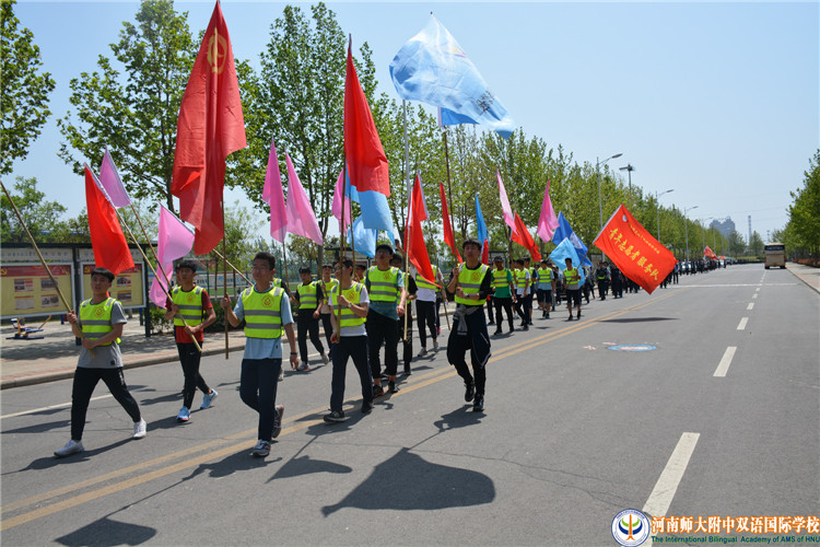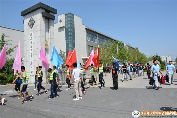 4月19日,作為學(xué)校課外特色活動(dòng)之一的“青春·勵(lì)志”遠(yuǎn)足活動(dòng)圓滿落下帷幕。雙語國際學(xué)校初一、高一和國際部的師生共計(jì)850余人從學(xué)校出發(fā),沿平原路一路東行,來到平原湖,在河南師范大學(xué)新聯(lián)學(xué)院就餐后,順利返校,這次遠(yuǎn)足來回里程達(dá)27公里。