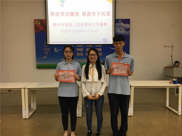 為了激發(fā)學(xué)生學(xué)習(xí)英語(yǔ)興趣,豐富詞匯量,提高學(xué)生英語(yǔ)綜合素質(zhì),給學(xué)生提供一個(gè)展示自我的平臺(tái),高二年級(jí)開(kāi)展了以“釋放英語(yǔ)激情,展我學(xué)子風(fēng)采”為主題的英語(yǔ)單詞王爭(zhēng)霸賽。本次大賽共分為激情團(tuán)隊(duì)賽、活力小組賽和魅力個(gè)人賽三個(gè)環(huán)節(jié)。