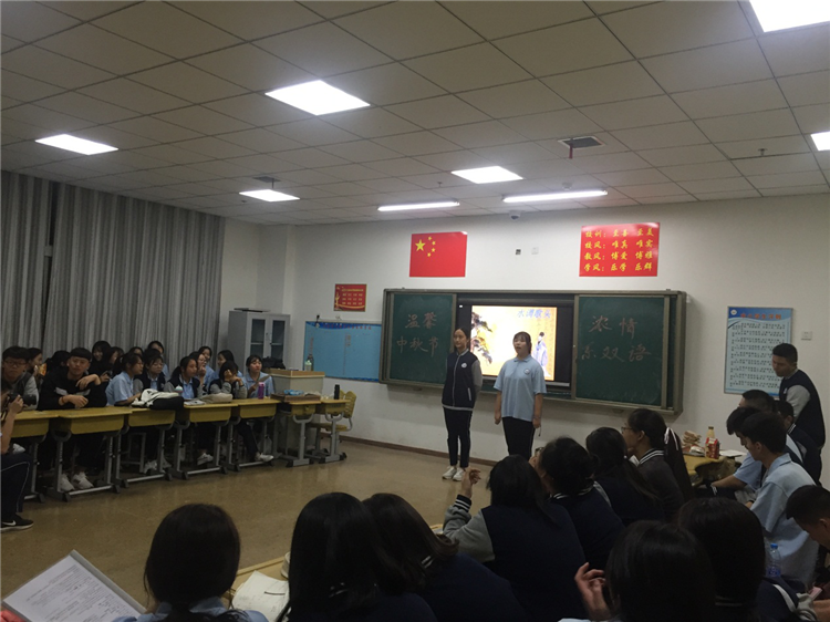 本次活動可以以班級為單位,也可以兩個班級合辦,在教室內進行?;顒有问截S富多彩,有的班級開展以中秋為主題的詩歌朗誦比賽,并組織同學們進行與中秋節(jié)有關的詩歌創(chuàng)作活動。同學們精彩獨到的朗誦形式,掀起一個又一個的歡樂浪潮,精彩紛呈的活動讓同學們在一起度過了一個歡樂而有意義的中秋佳節(jié)。