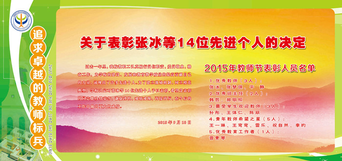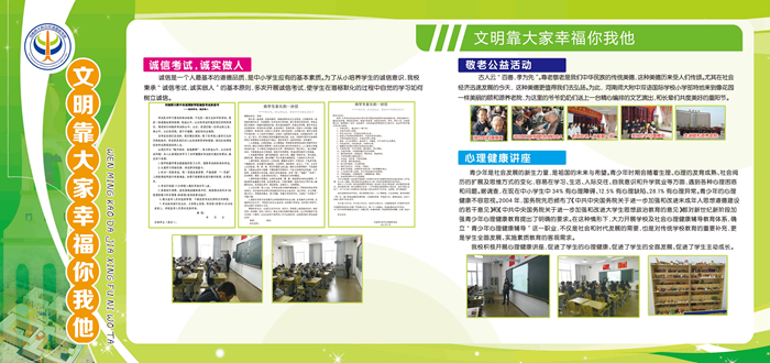 濃郁的校園文化熏陶人,樸實(shí)、敦厚的校風(fēng)感染人,先進(jìn)的辦學(xué)理念教育人,和諧、融洽的環(huán)境氛圍影響人。以下二十四面展示充分介紹了我校濃厚的文化風(fēng)采,獨(dú)特的教育魅力。